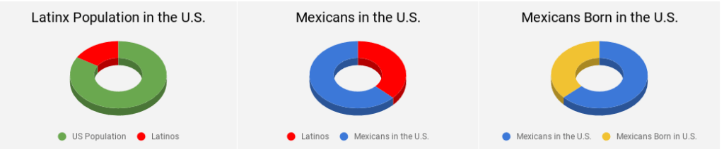 *Nota sobre la terminología: Cuando uso el término mexicano o mexicana, lo que se quiere decir es personas mexicanas (nacidas tanto en México como en Estados Unidos), Chicanas y mexicano-americanas. Los recursos que utilizo en este artículo usan por lo general “mexicanos” para referirse a las tres categorías. Lo mismo sucede en los datos del censo de EE.UU. que usan mucho este recurso para su información. Por ejemplo, en el censo de 2010, se les pregunta a las personas “¿tiene esta persona origen hispano, latino o español?” Si responden sí a esta pregunta entonces tienen la opción de identificarse en diferentes grupos latinos. Una de estas opciones era “mexicano, mexicano-americano, chicano” Así que los chicanos y mexico-americanos que eligieron esta categoría fueron incluídos en el grupo “mexicano” en todas las estadísticas presentadas en el censo. Hice la diferencia entre las personas en los casos en los que me fue posible, por ejemplo mexicanos nacidos en Estados Unidos, nacidos en el extranjero, indígenas, etc.